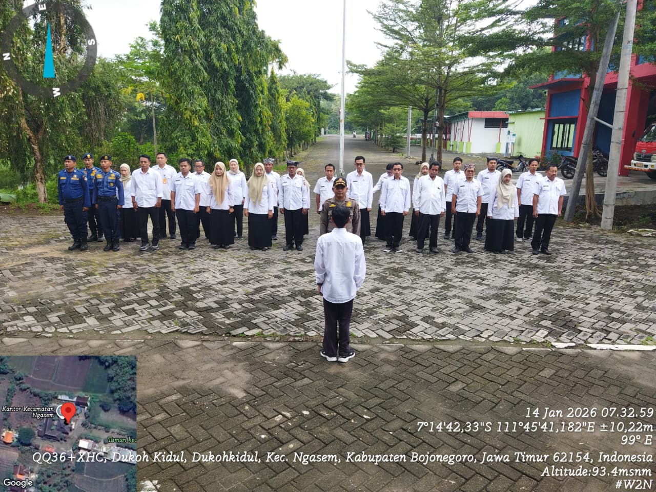 Kegiatan : Apel Pagi yang diikuti oleh ASN Kecamatan Ngasem, Instansi Satu Atap (Dinas Dukcapil, DKPP/Penyuluh Pertanian, DP3AKB/Penyuluh KB, Damkarmat, Satpol PP),...