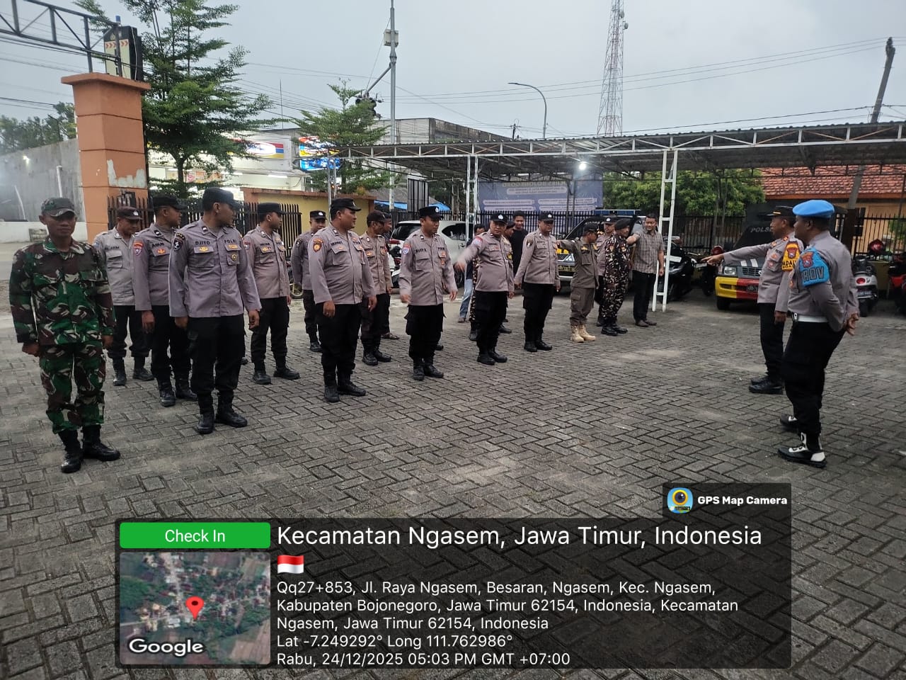Satpol PP Kecamatan Ngasem mengikuti Apel Pengamanan Perayaan Natal di halaman Mapolsek Ngasem, sebagai bentuk sinergi lintas sektor dalam menjaga keamanan dan ketertiban dilanjutkan dengan pengamanan pelaksanaan Misa Natal di Gereja Katolik Santa Maria Desa Kolong, Kecamatan Ngasem, guna menjaga keamanan dan ketertiban selama rangkaian perayaan Natal