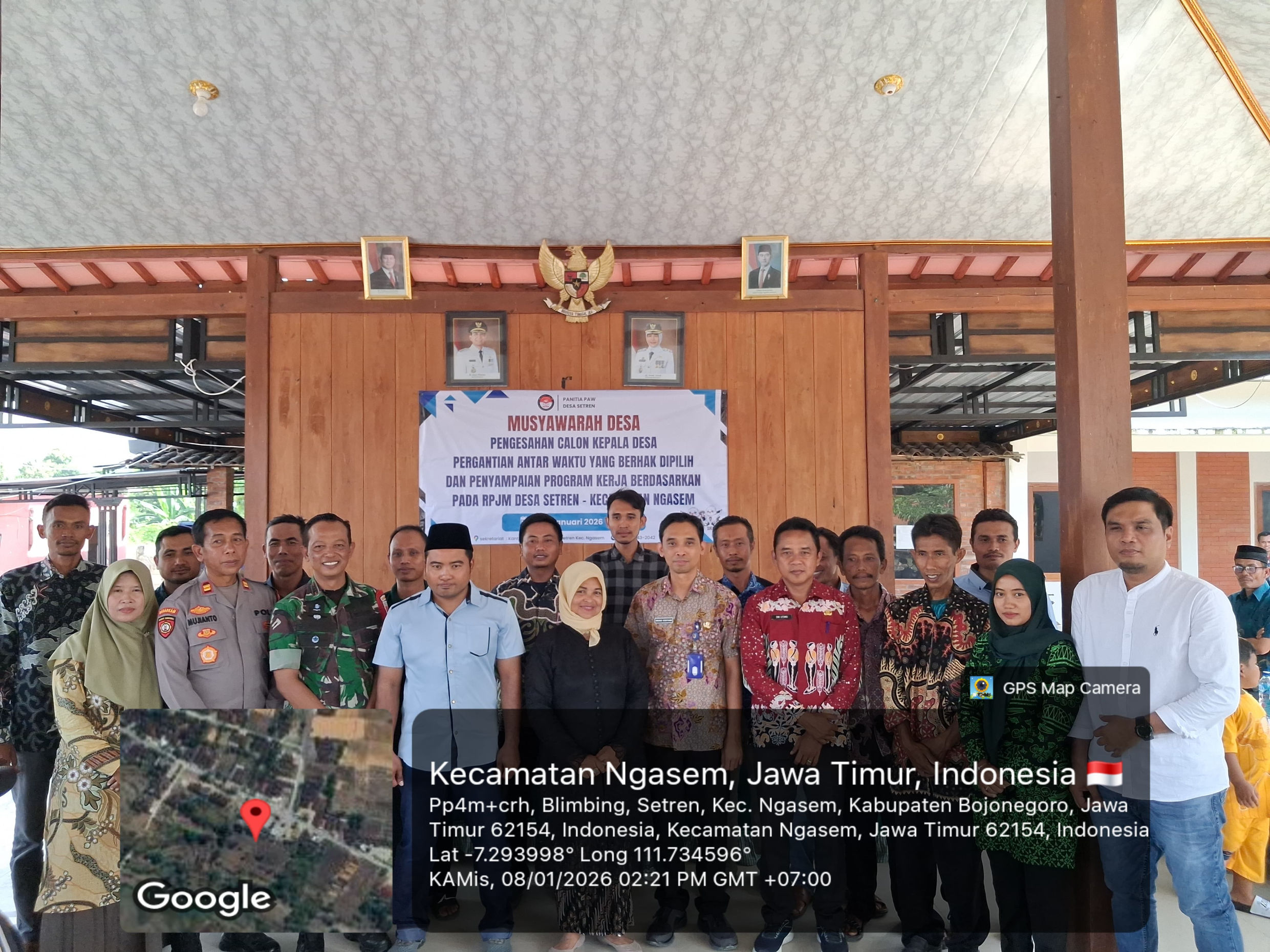 Forkopimca Ngasem menghadiri kegiatan Pengesahan Calon Kepala Desa Pergantian Antar Waktu (PAW) yang berhak dipilih dan penyampaian program kerja berdasarkan oada RPJMD Setren, yang dilaksanakan pada Kamis, 8 Januari 2026
