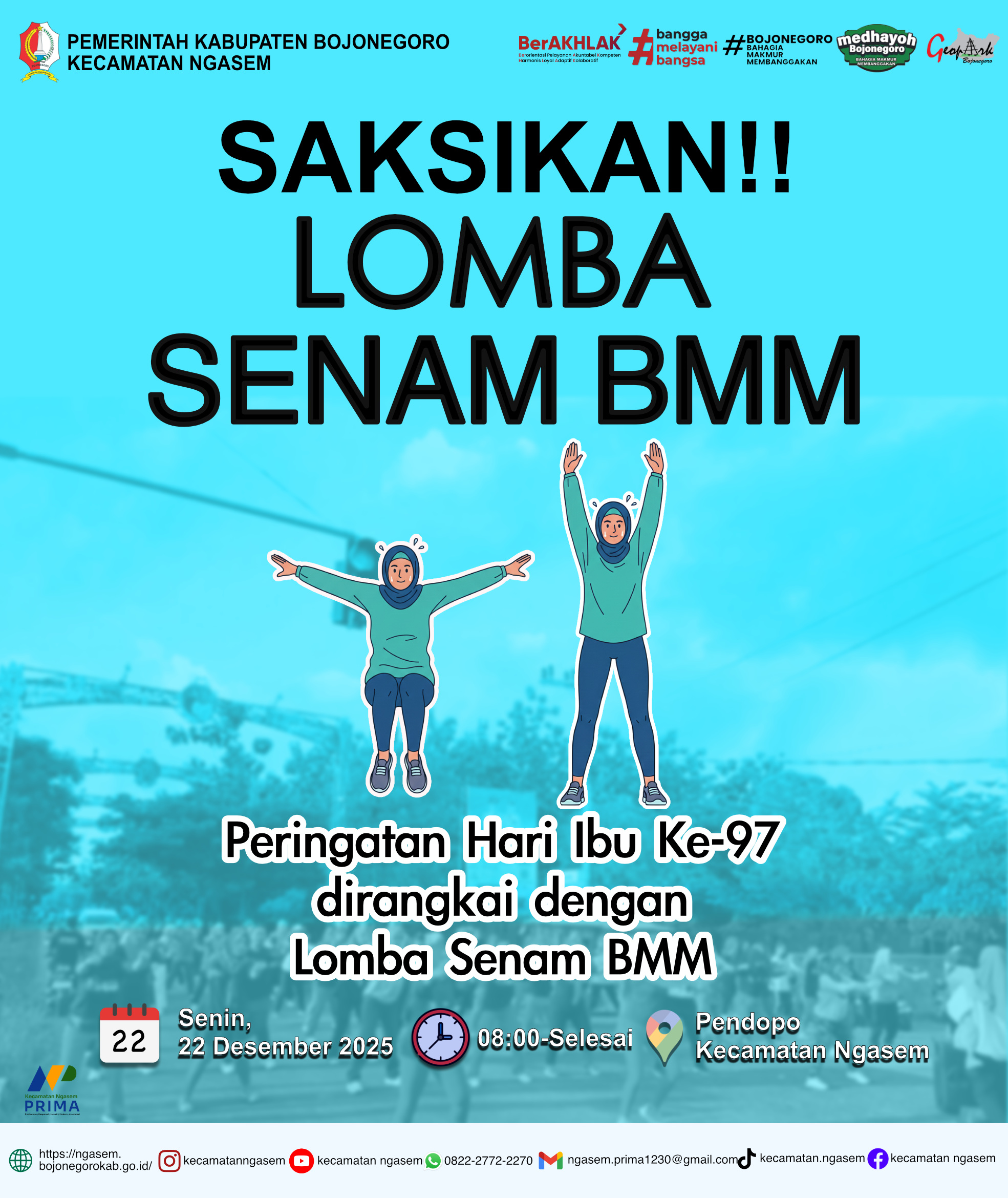🎉 Ayo, Ramaikan! Lomba Senam BMM (Bahagia, Makmur, Membanggakan) Tingkat Kecamatan Ngasem! TP PKK Kecamatan Ngasem mengajak seluruh Tim Senam Desa untuk ikut...
