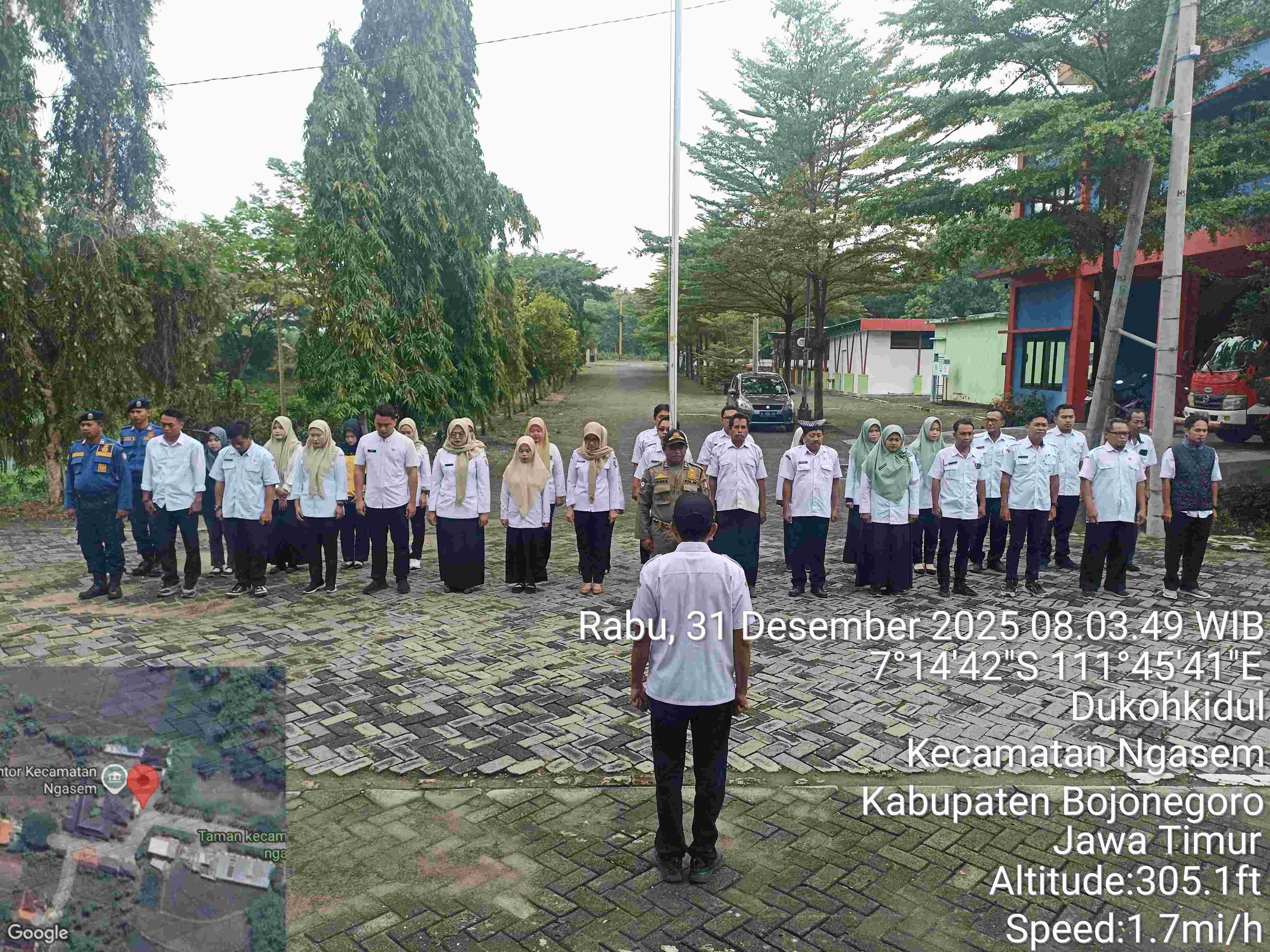 Kegiatan : Apel Pagi yang diikuti oleh ASN Kecamatan Ngasem, Instansi Satu Atap (Dinas Dukcapil, DKPP/Penyuluh Pertanian, DP3AKB/Penyuluh KB, Damkarmat, Satpol PP), Pendamping...